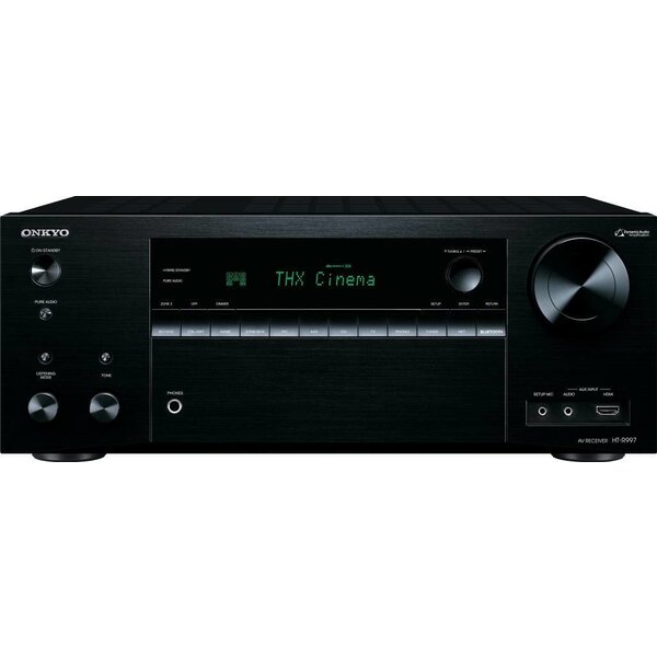 Lassen Sie mit dem Onkyo HT-S9800 Sound aus allen Richtungen kommen. Dieses Heimkino-Set besteht aus einem AV-Receiver und einem 7.1-Lautsprechersystem. Die 7 Lautsprecher befinden sich an verschiedenen Ecken des Raums und bieten echten Surround-Sound für Ihren Film oder Ihre Serie.Verbinden Sie das Gerät über WLAN oder Bluetooth mit Ihrem Smartphone oder Laptop.Da das Set auch Dolby Atmos unterstützt, können Sie dafür leicht ein Arrangement erstellen.Auf diese Weise kommen Soundeffekte besser zur Geltung. Das Flugzeug aus dem Film scheint einfach über den Kopf zu fliegen.